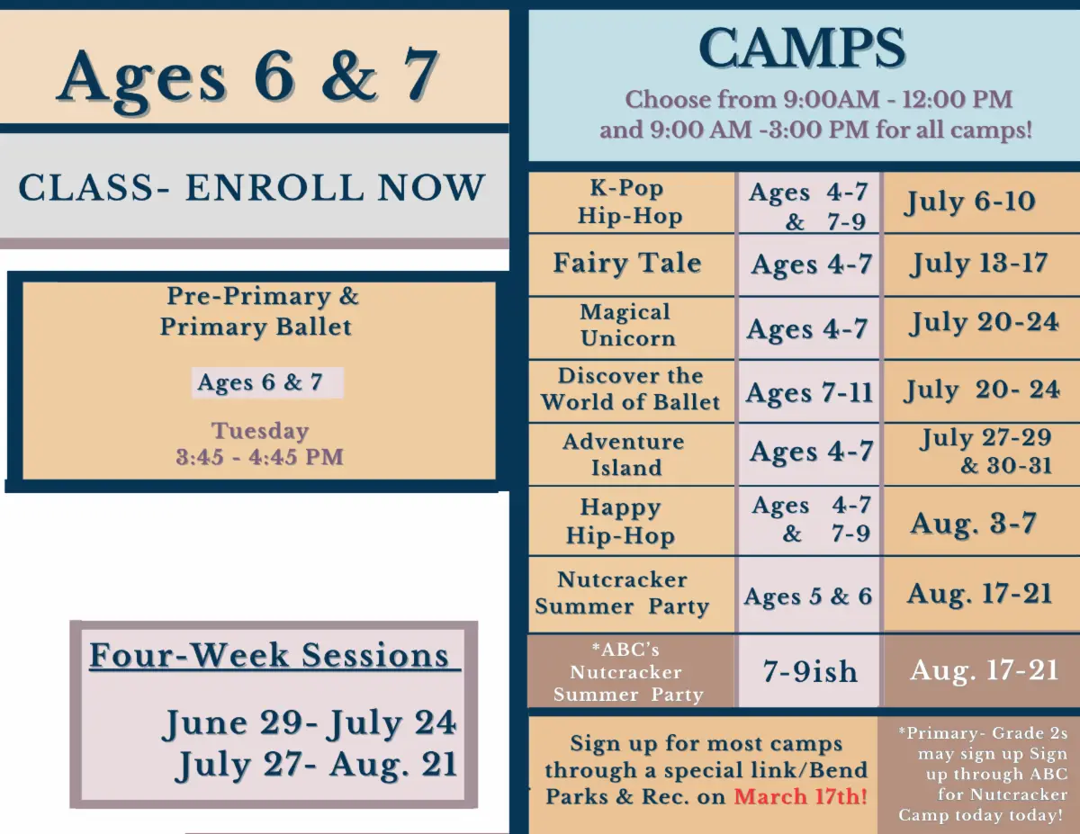 Enroll in ABC Bend Dance Camps- their place is secure for a week of dance, crafts, and feel-good dancing!
